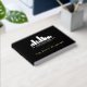 Black and gold guestbook for your small business personalized with your logo. Personalized bed and breakfast guestbook in black with custom gold foil text and your logo. Black and gold foil guestbook for your rental home, rental farmhouse, rental cabin, or rustic bed and breakfast with custom gold foil text and your logo against a black background.