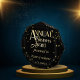 An achievement recognition award. Replace and insert company logo and name of recipient. This design features a black and stars background with golden text. Suitable for company business anniversary's event.