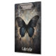 A beautiful black and midnight blue butterfly on a textured grunge background creates a gorgeous Gothic style clipboard. Personalize with your name at the bottom. The back is solid black.