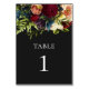 Black Gothic Moody Floral Burgundy Wedding Table Number