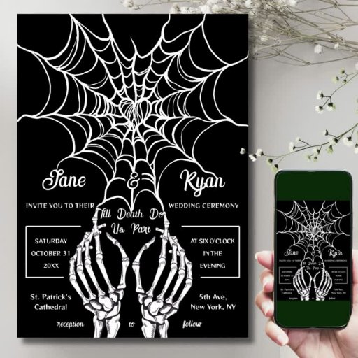This enclosure card beautifully complements all other elements of our "Till Death Do Us Part | Gothic Heart & Skeletons" creating a cohesive and unforgettable look for your wedding stationery.