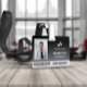 Employee ID badge with a clean minimalist design in black and white. Add a photo of the employee along with name and profession against a black gradient background. Personalize further with your business logo and bar code.