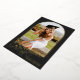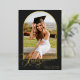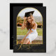 Honor your graduate's achievement with this elegant black and gold-themed graduation announcement. Featuring a bold gold-foil "Graduate" calligraphy script, and space for a large photo in a modern arched frame, this design exudes sophistication and charm. Perfect for high school or college graduations, it blends modern style with timeless elegance. Personalize with your details to create a memorable keepsake.