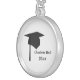 Painting of a black graduation cap with a black tassel, with template placeholders for graduate's name and the year, is printed on these personalized necklaces. Thank you for shopping at CherylsArt on Zazzle.