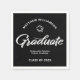 Be proud, rejoice and showcase this milestone of your favorite grad! Celebrate with these simple, modern yet retro, minimal custom paper napkins. Bold, graphic, white handwritten script calligraphy, sans serif typography and a white hand drawn grad cap icon overlay a dramatic black background. Personalize the custom text with your grad’s name and address. Personalize the custom text with your graduate’s name, class year and school or special message. Available in various sizes. Matching invites, thank you cards, hand fans, banners, yard signs and other graduation goodies are also available in this retro and trendy collection. Guaranteed to add stylish fun to their special party!