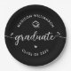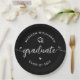 Black Graduation White Modern Script Hearts Cap Paper Plates