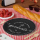 Be proud, rejoice and showcase this milestone of your favorite grad! Celebrate with these simple, modern, bold custom paper plates. Fun white handwritten calligraphy script with cute, playful hearts and a graduation cap icon overlay a black background. Personalize the custom text with your graduate’s name and class year or special message. Available in 2 sizes: 7” or 9”, round or square. Matching invites, thank you cards, hand fans, banners, yard signs and other graduation goodies are also available in this trendy and playful collection. Guaranteed to add stylish fun to their special party!