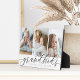 Create a sweet gift for a beloved grandma or grandpa with this beautiful photo collage plaque. "Grandkids make life grand" appears in black and gray calligraphy lettering beneath 3 photos of their grandchildren.
