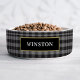 Elevate your pet’s dining experience with this personalized pet bowl. Adorned with a classic black and gray glen plaid pattern, gold accents, and a customizable name, this design exudes sophistication and style. Customize it with a pet’s name to create a unique food bowl for your own pet or as a tasteful gift for a new pet owner or animal lover.