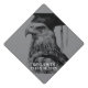 Custom graduation cap topper features a unique eagle grad design with your name and class year. You can use the template to change the name and year. Black and white color hues. Use the template to personalize.