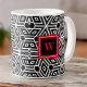 Black Gray White Cubism Neo Geo with Red Monogram Coffee Mug