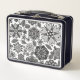 Lunch Box in classic old school color finish printed with Black And Gray On White Retro Floral Art Seamless Pattern original hand drawn graphic design artwork illustration by TheFabricSeal print on demand shop at Zazzle.com #ZazzleMade ©️Original. https://www.zazzle.com/store/thefabricseal