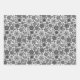 Gift Giving Package Wrapping Paper set of 3 sheets printed with Black And Gray On White Retro Floral Art Seamless Pattern original hand drawn graphic design artwork illustration by TheFabricSeal print on demand shop at Zazzle.com #ZazzleMade ©️Original. https://www.zazzle.com/store/thefabricseal