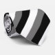 Look sharp in stripes featuring black, gray and white.