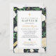 Black Green and Gold Floral Baptism Baby Girl Invitation