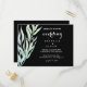 A modern botanical wedding invitation featuring a bold black background with soft watercolor greenery for a stylish and elegant look. The mix of classic serif and romantic script typography highlights the couple’s names beautifully. Perfect for nature-inspired weddings, evening ceremonies, and chic minimal themes with an artistic touch.