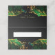 Uniquely beautiful jewel-toned alcohol ink art in emerald green with gold and bronze highlights on a black card. There is a white panel on the front of the card for handwritten guest names. Black Green Bronze Gold Wedding Place Card.