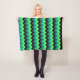 A small size fleece blanket featuring an elegant pattern design of multicolored chevrons in black, gray, green and turquoise.