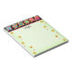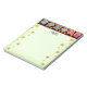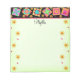 Enjoy your love of quilting with this notepad with a black quilt block header at the top and customized with your name below the header. Great gift for your quilter freinds. Quilt art is based on favorite patchwork quilt blocks such as the log cabin and star blocks plus unique blocks in vibrant and dynamic colors of orange, yellow, pink, turquoise, and lime green. The backagrouns is black that makes the colors pop for a beautiful color palette. The writing part of this notepad is light green with small flowers decorating the edges. Quilt art is original art from fabric and quilt designer Phyllis Dobbs. This art is available on other products and in several color backgrounds. Quilt business products are available in Phyllis' BusinesswithFlair store. Match with coordinating stamps, envelopes, stickers and return address labels.
