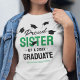 Beaming with pride of the success of your brother or sisters achievements! Then show them how proud you are with these personalized graduation ceremony t-shirts featuring falling mortarboard caps, the text "proud sister of a 2026 graduate", the grads name, and the color green to represent their school or college colors.