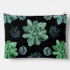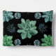 Floral design of blue, green, teal succulents on a black background. Summer style for Toiletry Bags.