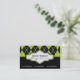 Black green white argyle trendy business cards, featuring a lime green and white argyle pattern. The bottom part is of solid black color. A black and a green stripe separate the two parts. Your company/name is typed on an elegant damask label with black and pink outline. Cute, modern design with a retro feel to it, that can be used for many business fields such as interiors, hairstylist, fashion and more.