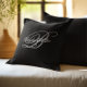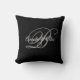 Black Grey and White Fancy Script Monogram Throw Pillow
