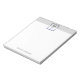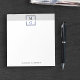 Personalized notepad for him with his initials in black and blue inside a frame in a clean and stylish look. Add his name beneath and give as a gift to the man in your life who needs personalized stationery to write down his messages, thoughts, and to do's!