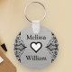 Black Grey Bride Groom Names Floral Wedding Keychain