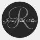 Black Grey Monogram R Bride Groom Names Wedding Classic Round Sticker