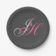 Black Grey Pink Monogram Simple Plain Paper Plates