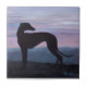 This ceramic tile features a reproduction of my original oil painting of a black greyhound silhouette..