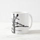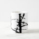 Mug. Ink line like picture of a black grouse sitting on a dead pine. Original photo taken in Swedish Lapland.
