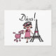Diva T-shirts, bodysuits, mugs, bags, cards, stickers, key chains, pillows, wall clocks, and much more with a cute diva design featuring a black haired girl in a hat and pink dress with her pink poodle near the Eiffel Tower!