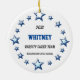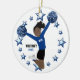 Black Hair Ponytail Pom Poms In Blue & Black Ceramic Ornament
