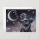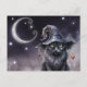 Black Halloween Cat Wearing a Witch Hat Postcard
