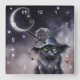 Black Halloween Cat Wearing a Witch Hat Square Wall Clock
