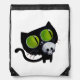 Black Halloween Cat with Skull Drawstring Bag