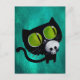 Black Scary Cat with Skull. This cute kitty cat with big green eyes holding a human skull! Not spooky cat all ;) What a great Halloween Gift for Kids. This black cat is like Edgar Allan Poe (or something;) but it won't bring You bad luck. I promise! Black illustration cat by Madame Colonelle