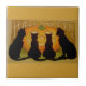 Step back in time to a classic All Hallows' Eve with this enchanting vintage-style art tile featuring a delightful tableau of Halloween icons. Four sleek black cats, embodying the spirit of the season, are captivated by the warm glow of a traditional, toothy Jack O'Lantern, with the word "HALLOWEEN" boldly displayed above.