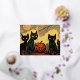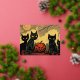 Black Halloween Cats with a pumpkin card