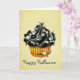 Cute Halloween design - cupcake with black cream and lots of tiny skulls and bones in it. To addition, small skull pin attached to the ribbon. Definitely nice Halloween dessert for any party of 'trick or treat'.