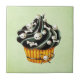 Black Halloween Cupcake with tiny skulls Tile