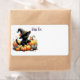 Black Halloween Kitten With Pumpkins & Witch's Hat Label