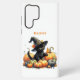 Black Halloween Kitten With Pumpkins & Witch's Hat Samsung Galaxy Case