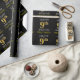 This wrapping paper design features a message like "HAPPY 9th BIRTHDAY", with the "9th" having a faux/imitation gold appearance. It also features a customizable name, and a black colored background. It could perhaps be used when wrapping gifts being given for somebody’s ninth birthday. [~Z0000130]