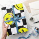 black happy face check groovy , chess board, checker board, happy face pattern, happy face print, happy face, retro, vintage, groovy, kidcore