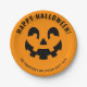 Black Happy Halloween Pumpkin Face Shape On Orange Paper Plates