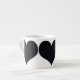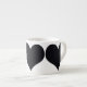 White ceramic espresso cup with three images of a black heart. See the entire Valentine’s Day Mug collection in the FOOD/BEV | Dishes section.