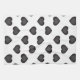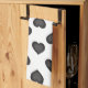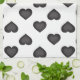 This kitchen towel features a repeating pattern of two-tone black hearts on a white background.
